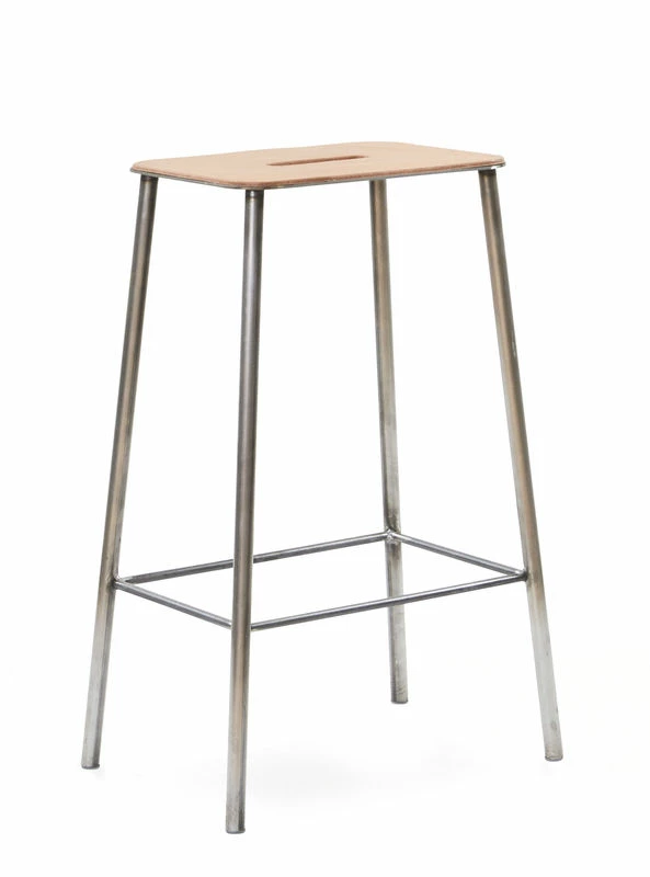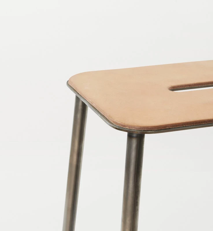 Created by Danish designer Toke Lauridsen, the Adam stool has become an iconic item of the Frama collection. Mixing industrial style and minimalist lines, Adam is inspired by the vintage workshop stool. It combines noble, highly resistant materials. The natural steel structure is fine and slender. It’s topped off by a thin seat in beige natural leather. This genuine, natural leather gains a patina over time, taking on a lustrous finish. So the more you use it, the better it gets! Adam is a simple, functional piece of furniture: the handle in its seat makes it easy to move around. The footrest bar ensures you are comfortable when seated. It is a solid, timeless stool that will never go out of fashion, a piece of furniture made to last and be handed down from generation to generation.