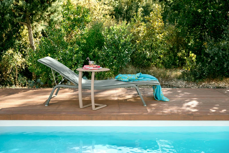 Complementing the Alizé sun-lounger, the talented Pascal Mourgue designed this pretty, colourful and easy-to-live-with offset coffee table. A sober, elegant look that integrates perfectly with any style of furniture: you can, for example, mix it with the chairs from the Luxembourg collection. Available in jolly, vibrant tones, it creates a festive atmosphere. The multitude of colours offers you so many options to create your outdoor decoration.