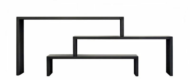 Superb set of 3 consoles designed by Maurizio Peregalli. This console corresponds exactly to the ZEUS philosophy: the creation of products that are authentic and handmade with simplicity, both useful and affordable. PLEASE NOTE: the phosphate steel is a material which requires a particular attention. Avoid water stagnation and direct contact with sources of heat (hot pans, hot mugs, etc) so not to mark the material.