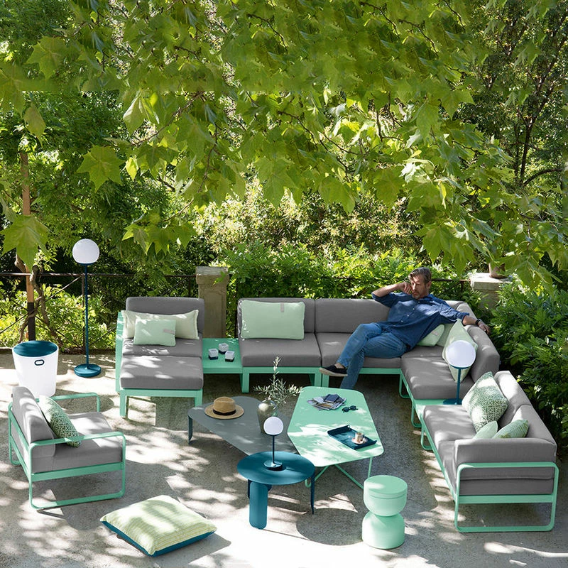 Refined and ethereal, the Bebop coffee table collection stands out for its diversity, stability and striking design. Available in three different shapes (round, square and rectangular), several sizes and multiple vibrant colours, the Bebop range meets all your needs! They can be used as coffee tables, bedside tables or pedestal tables, and can be easily moved around and positioned wherever you like. They fit in just as well indoors in your living room, bedroom or entrance hall, as outdoors on your balcony or in the garden. This round-topped coffee table is a superb illustration of one of Fermob’s key themes: simplicity. Tristan Lohner, a designer who’s in tune with Fermob’s values, has designed a stunning table thanks to the skill of Fermob’s technicians: the top is supported almost invisibly, as if by magic, on legs that reveal the purity of a simple form. These Bebop tables available in different heights can be arranged separately, or used together to create a beautiful graphic composition. To save space, the tables interlock.