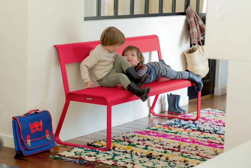 Count on togetherness with Bellevie! This large aluminium bench with backrest (L 161cm) can accommodate 4 people: the ideal accompaniment for large family tables, both inside and outdoors. Very light and stable, it forms a wonderful set with the Bellevie table. Combination of aluminium and steel, to optimise handling and stability, this new bench will also find its place on its own, in a garden or on a terrace. The Bellevie bench with backrest is available in a variety of jolly and vibrant colours.