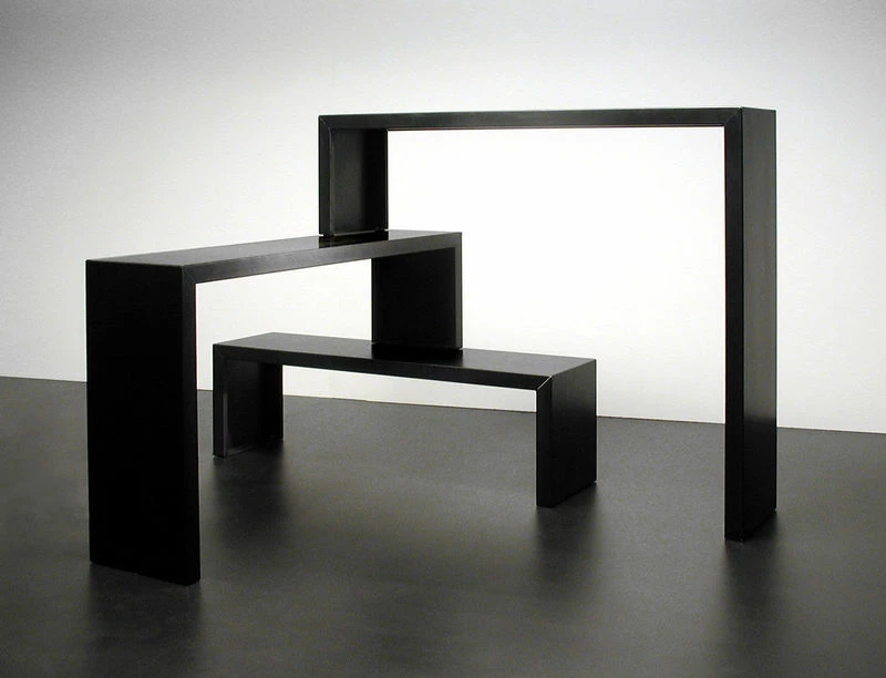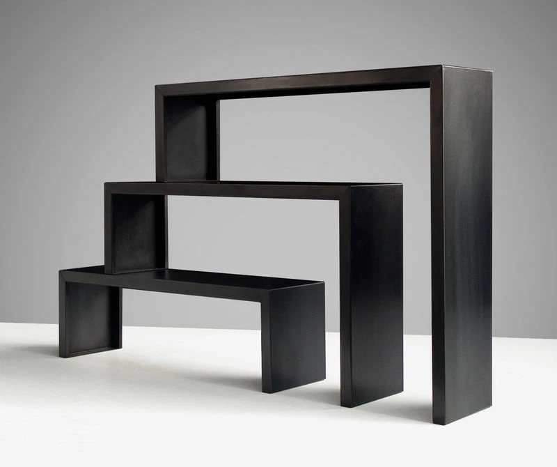 Superb set of 3 consoles designed by Maurizio Peregalli. This console corresponds exactly to the ZEUS philosophy: the creation of products that are authentic and handmade with simplicity, both useful and affordable. PLEASE NOTE: the phosphate steel is a material which requires a particular attention. Avoid water stagnation and direct contact with sources of heat (hot pans, hot mugs, etc) so not to mark the material.
