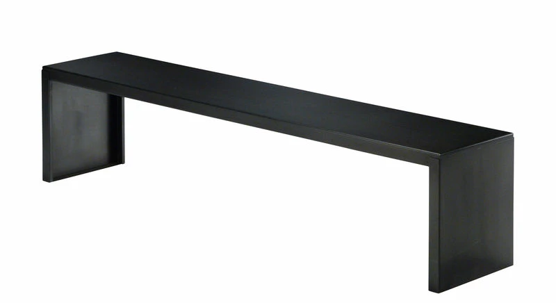 This magnificent bench designed by Maurizio Peregalli has elegance, and can be integrated in to modern decor as well as classic. It exists in 3 different lengths: 130cm, 170cm and 210cm. It forms a very beautiful set with the Big Irony table. This bench corresponds exactly to the ZEUS philosophy: the creation of products that are authentic and handmade with simplicity, both useful and affordable. It is made out of phosphate coloured black sheet steel and maintained the same way as wood (the beeswax avoids water marks on the material, and also avoids the risk of rust). PLEASE NOTE: the phosphate steel is a material which requires a particular attention. Avoid water stagnation and direct contact with sources of heat (hot pans, hot mugs, etc) so not to mark the material. For indoor use only (not suitable for outdoor use)