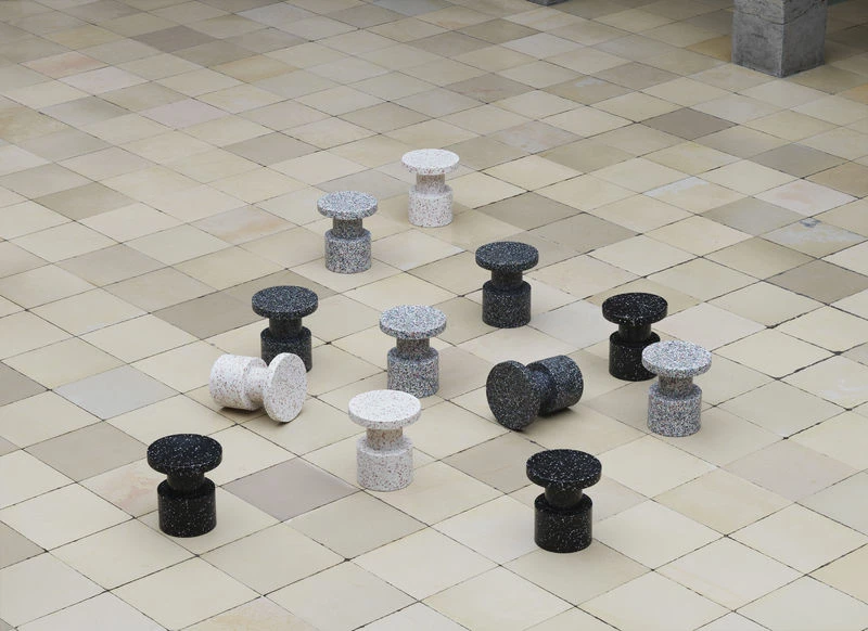 The Bit stool proves it’s possible to give waste a second life to create a new object that’s beautiful, useful and durable. This plastic stool is made from recycled industrial and household waste. Cheerful and subtly coloured, this plastic material presents irregular speckled patterns that give it a mineral aspect, reminiscent of terrazzo or granite. Each Bit stool is unique, their colour and patterns varying slightly from piece to piece. Highly sculptural, the monolithic shape of the Bit stool is inspired by Greek columns and Roman architecture. The rough appearance of the solid lines contrasts nicely with the delicacy of the pixelated pattern made up of a multitude of coloured plastic glitter pieces. Bit is multifunctional: stool, small side table, bedside table or pedestal to highlight a flower arrangement or lamp… The Bit stool is available in four captivating colour combinations.