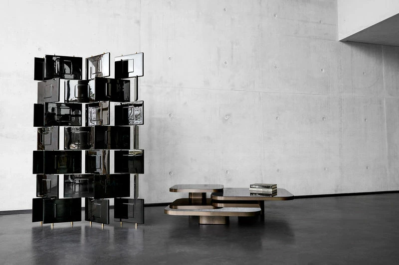 A coffee table inspired by the 70s.., This is what the Brazilian designer, Guilherme Torres is offering us with Bow n°5, characterised by its elegance, its gentle shapes and its rounded angles. This coffee table is made up of a burnished brass structure and a black glass top for an absolutely divine finish. Its metallic surface evokes the futurist designs imagined during the 70s, while enjoying a very modern design. Endowed with a sculptural outline, Bow n°5 gives your room some character. For an even more majestic and original effect, the set of tables from the Bow collection can be put together and harmoniously placed on top of one another to form a set at different levels.