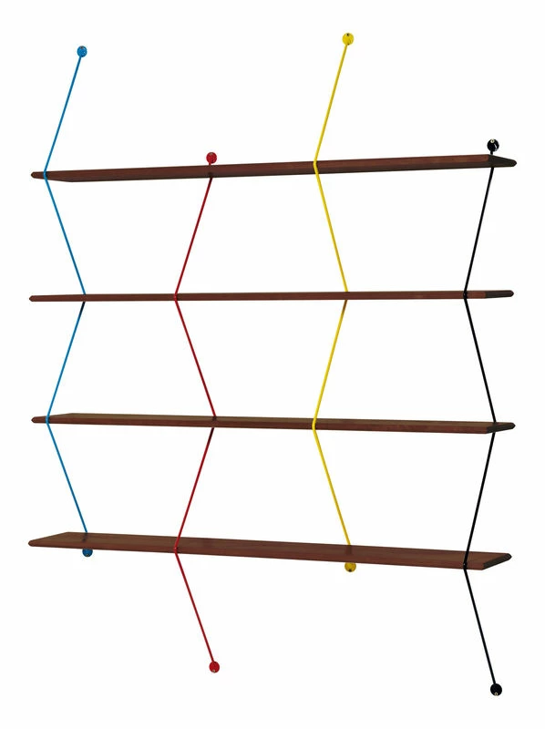 This large wall shelving unit embraces the wired trend with angular and asymmetric lines. With its very graphic zigzag uprights, Climb awakens your curiosity. The design of Climb plays on the feeling of tension from the metal wires which hold the solid wood planks, which becomes structural themselves. The finish is perfect: the wooden planks are bevelled all along their edges. Climb is made up of 4 shelves (L 120 cm) inserted into 4 metal wire uprights. This bookcase is very easy to assemble and take apart: the shelves simply insert into the uprights, with no screws or glue.