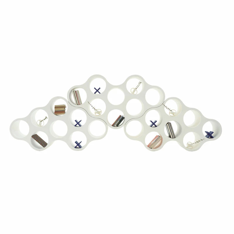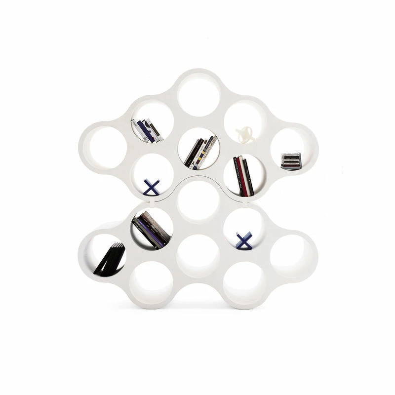 Treat yourself to an ORIGINAL iconic piece by Cappellini. An original will never lose its value. It will stay with you for your whole life, and even longer, perfect for passing on to the next generation. Since the early 2000s, the work of brothers Ronan and Erwan Bouroullec has emerged as one of the most representative of the dynamism of French design. Designed in 2004, Cloud is an iconic piece, embodying the work of famous designers. This modular bookcase, made from polyethylene, is open on both sides. Pierced with multiple circular openings, Cloud is a structure with undulating contours, their geometry evading clear definition. “We try to create a kind of visual shock. The constructed space being progressively rectangular, there’s a tendency to become progressively shapeless, to create a contrast. We’re seeking a way of organising space, and that can be based on separations that are more symbolic in nature than physical. To create the symbolism, we opted for shapes which opposed the geometrical rigour of architecture. They’re therefore recognisable, impactful, and surprising.” Storage and a partition all at once, this large module can be placed against a wall or even in the middle of a room and hence used as a separation between two spaces. Like a mashrabiya, this openwork and lightweight partitions lets you look through it. Each element comes with two assembly clips to create compositions with several modules and put together storage/partitioning set-ups which suit your needs and wants. The elements of Cloud can be assembled in various senses. The idea is to create a flexible space, enabling it to be adapted to diverse needs.Ronan and Erwan Bouroullec: “The walls that we offer stimulate people, they spark a desire in them to take part in a form of composition, to play with the layout of thingsโฆ The advantage of these composing systems is that they question the people using them, making them think about the space that they’re living in, its size, its layout, and which they often try to answer in an unexpected and creative way.” The robust yet lightweight Cloud shelving can easily be moved around. It can also be used outdoors. Bold and poetic, this functional “micro-architecture” dresses the space with originality, creating spectacular staging.