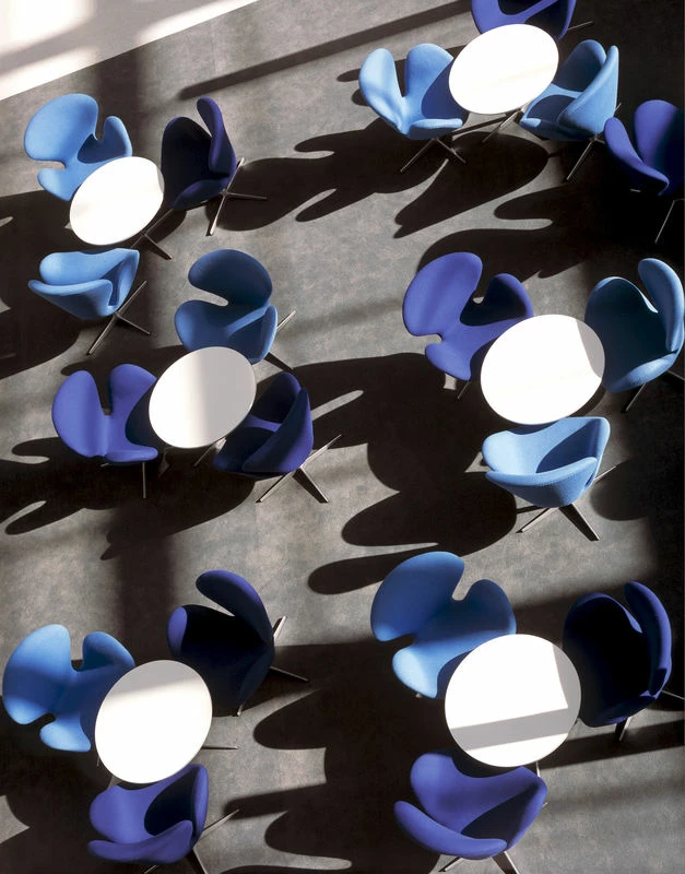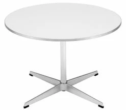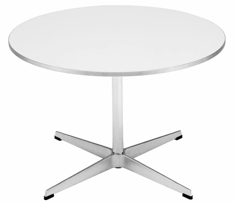 The table series includes the Super-Elliptical™, the Super-Circular™, designed by Piet Hein and Bruno Mathsson and circular, square and rectangular tables designed by Arne Jacobsen. The most prominent member of the series, the Super-Elliptical table, was inspired by the designer Piet Hein’s solution to a traffic problem at Sergels Torg in Stockholm: A super elliptical roundabout. The ingenious shape was conceived in his mathematical mind. This variation of an oval possessed some attractive qualities and looked surprisingly harmonious no matter the size. The formula based shape has no ends and this is why the Super-Elliptical table can be seen as a democratic table where everyone has an equal position. Piet Hein, Bruno Mathsson and Arne Jacobsen contributed to the base design of all the tables. The tables come in a wide variety of shapes and sizes. With very few exceptions the tables are all available in 3 finishes: laminate, veneer and linoleum. Depending on the shape of the table there is a choice of 3 types of bases: span legs in chromed or satin chromed steel (design Piet Hein and Bruno Mathsson), 4 or 6 star base in satin polished aluminium foot and a satin chromed steel pedstal, or shaker base in satin polished aluminium (design Arne Jacobsen).