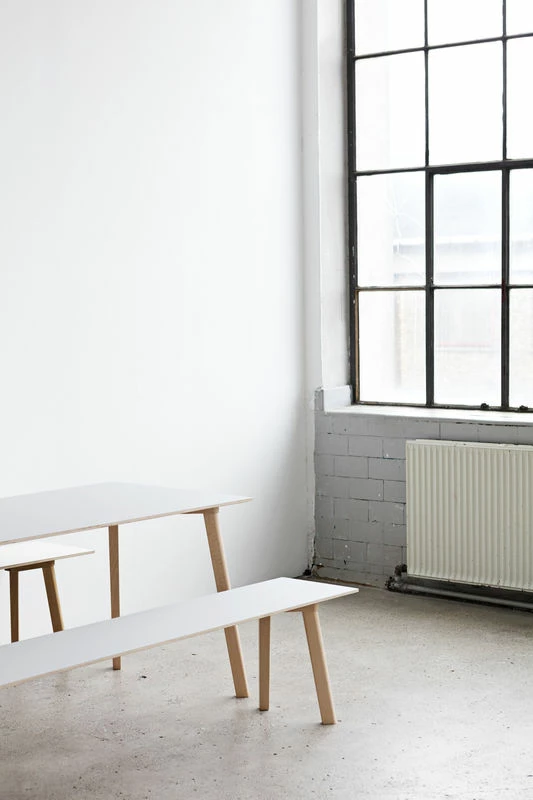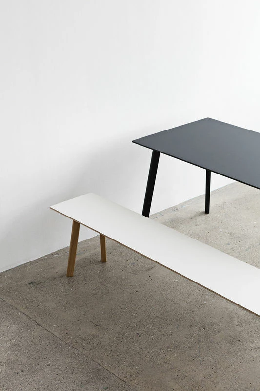 The Bouroullec brothers' Copenhague Deux collection is a versatile range of tables and benches designed especially for compact spaces. The collection includes dining tables, coffee tables and benches in a wide variety of shapes and sizes, which all share the same light, uncluttered profile. The table top surface is made from a new laminate based on nanotechnology, which provides an ultra-matt surface with a soft touch that is anti-fingerprint and easy to clean. Ideal for offices, homes and cafés and anywhere tight on space.