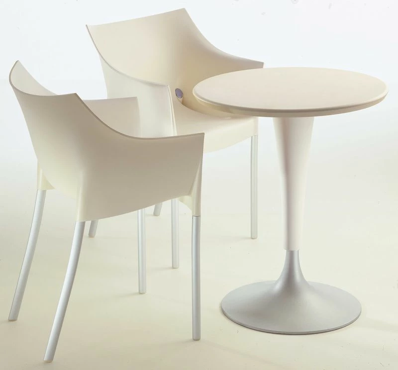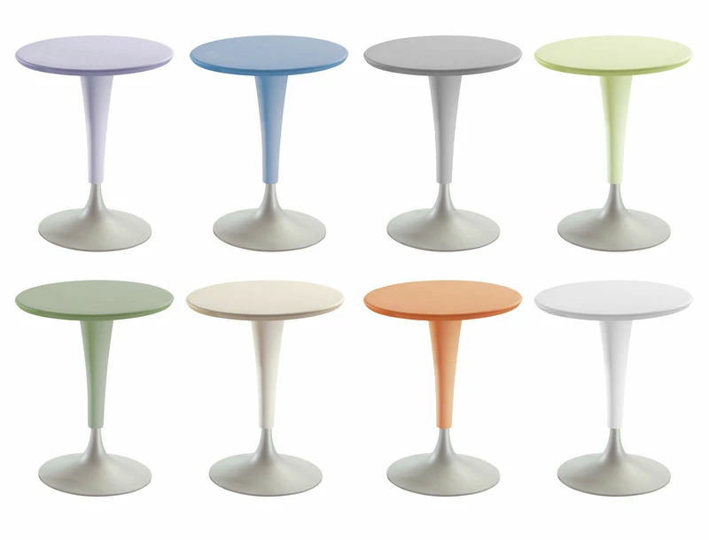 Small round table with a plate treated anti-scratches, aluminium and plastic foot. Dr. Na can be used outside.