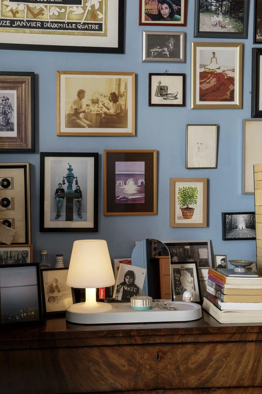 PLEASE NOTE: Edison the Petit II wireless lamp NOT INCLUDED (sold separately). This large tray is highly practical. Equipped with a detachable mirror, you can use it as a trinket bowl to store all your small items in: keys, money and mobile in the entrance, jewellery and make-up in the bathroom, etc. The ABS tray is coated in a rubber finish that is very soft to the touch. The mirror is detachable: it slides into a groove located on the back of the tray in which you can also place mail, photos or post cards, etc. The tray can be placed on a piece of furniture or attached to the wall like a shelf (invisible wall fastening made from steel included). To the left of the tray, the round space can house an Edison the Petit II wireless lamp (PLEASE NOTE: lamp NOT INCLUDED, sold separately). A hole on the lamp space lets you pass the lamp charging cable through. This lets you recharge the lamp while it remains on the shelf.