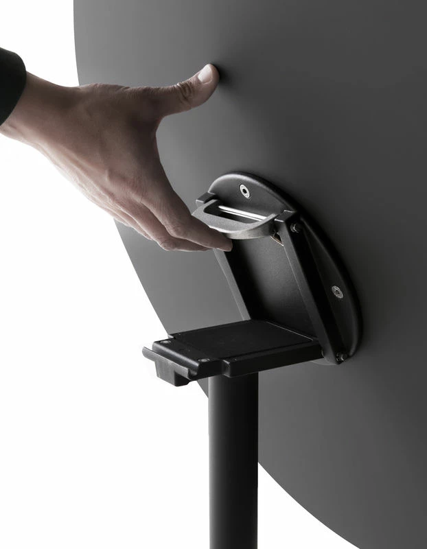 The collection of Elephant chairs, with their characteristic structure inspired by the shape of an elephant's back, is enhanced with a new item: the bistrot table. Based on the trestle base of the swivel version, in polished or painted pressure die-cast aluminium, it supports a thin round top. The idea has been extended to also include a version with a double base and a rectangular top. Versatile Elephant tables are available with tops in different colours, either fixed or folding, to suit the most diverse needs and contexts: the home, the office or contract furniture projects.