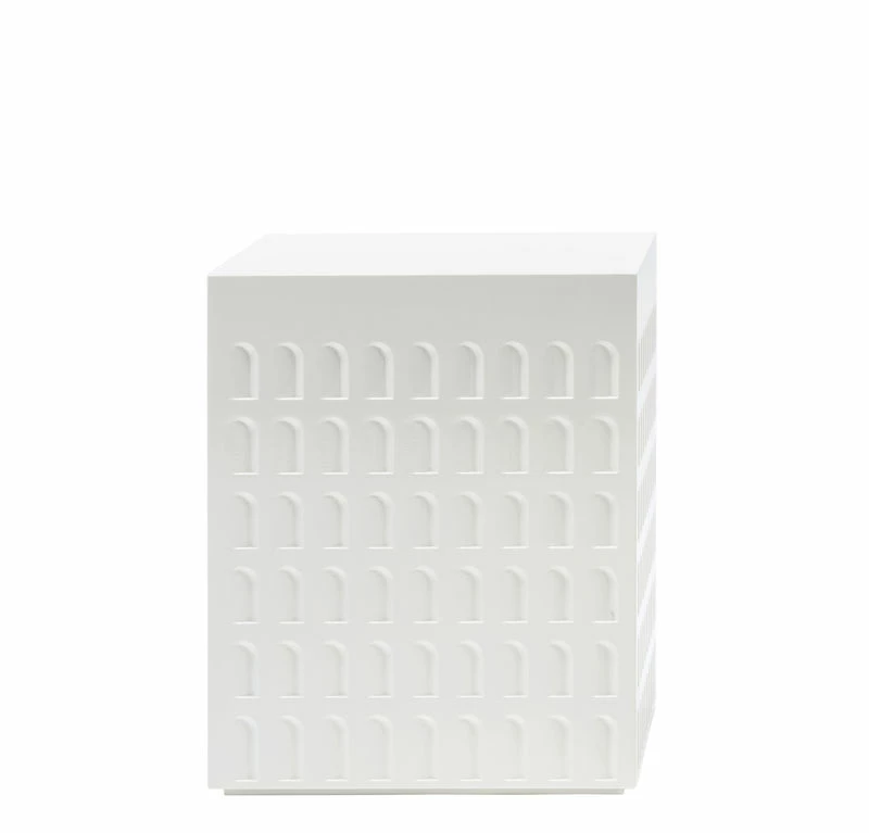 Sculptural language and very modern style for this monoblock stool, inspired by the urban landscapes of major cities. Italian designer Fabio Novembre reproduced the architecture of the “Palace of Italian Civilisation”. Known by the Romans as the “Square Coliseum”, this emblematic monument was built in 1940, in the EUR business district in Rome. This Palace has often been used as a set for films, television films and advertising. It long remained empty and unoccupied and since 2015, it has sheltered the head office of luxury brand Fendi. The EUR stool is a solid cube with countless lines of symmetrical arches. It is inspired by the architectural language of the original building: extremely refined neoclassic style, references to ancient architecture, essential lines, geometric vocabulary. This stool can be used as a small end table indoors and outdoors. Its unusual design will look sensational in a living room or terrace.