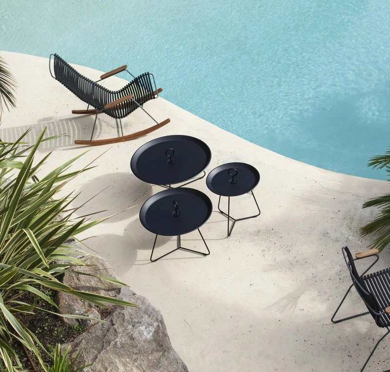 Available in some very current colours, this small, portable, easy-going table can move from the lounge to the garden depending on your needs! Made of lacquered metal, “Eyelet” is characterised by its tripod base and tubular structure that passes through the top in its centre… A true extension of the structure, the handle ensures a good grip of the product while guaranteeing perfect balance during transport… It’s this unique design that makes the product so very original and functional! This highly durable coffee table is there for all your moments of relaxation. It has a drainage hole that prevents rainwater from stagnating.