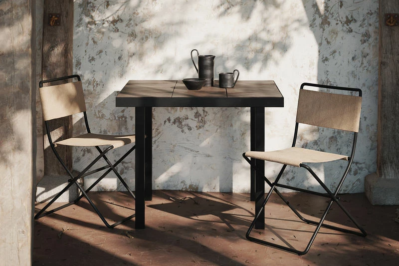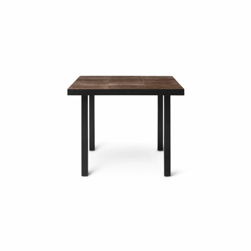 A fusion between past and future… A hybrid style for this steel table whose top is inlaid with a superb mosaic of clay tiles, a material with a warm, natural texture. These tiles are hand-crafted in Italy using centuries-old manufacturing techniques, using the finest Po clay. Very hard-wearing, they’re not afraid of water: Flod Tiles tables can be used both indoors and out. The tiles are simply laid in the steel frame without joints (they’re not sealed): this allows rainwater to flow through the perforated frame. The clay is slightly rough and coarse, with colour variations: these characteristics deliver an authentic, natural aesthetic. Imperfect shapes and irregular workmanship showcase its craftsmanship and hand-made nature. The raw appearance of the material contrasts with the modern style of the sleek black steel structure. Flod Tiles tables have the retro charm of antique furniture found in flea markets. Like those pieces of furniture that have lived a life and have a story to tell, the Flod Tiles collection brings a warm, authentic note to your decor.