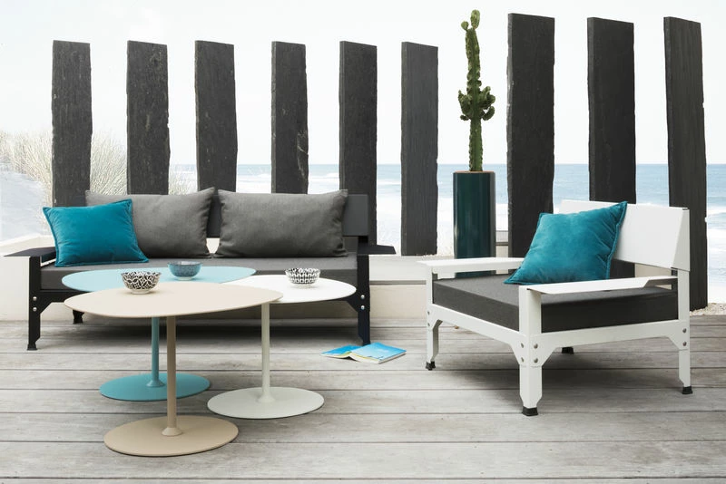 Zen feel… The Galet collection consists of metal coffee tables with irregular shapes inspired by nature. The top’s curved contours, fluid and organic, evoke the shape of pebbles (“galets”). These aluminium tables are suitable for outdoor use. They are designed and manufactured in France to the best quality standards. Thanks to their large round base, these coffee tables are perfectly stable. Galet coffee tables are available in different sizes. You can use the tables separately or bring several of them together in front of a sofa to create wonderful graphic creations. The different heights let you overlap the tops. The result is fabulous: the natural forms compose a light and airy volume. Mix the colours and let your imagination do the rest…