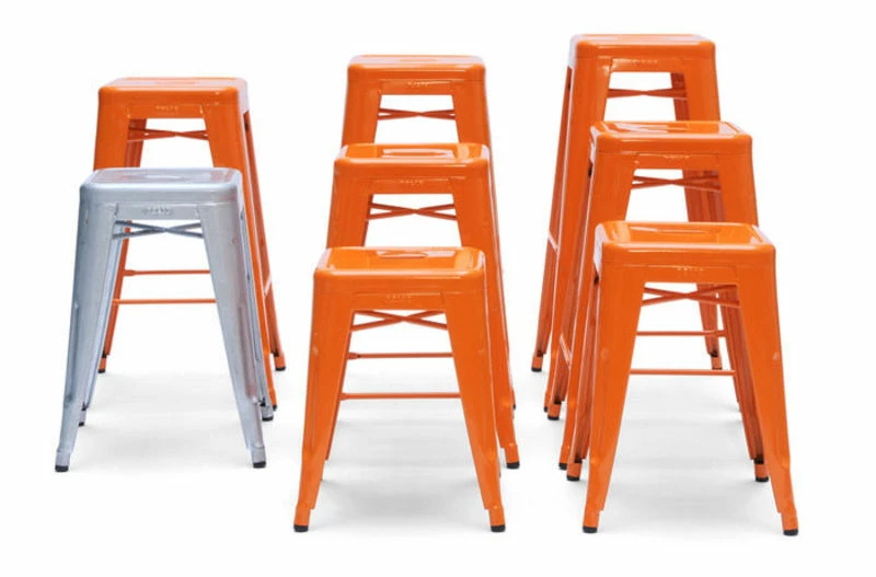 The H stool, an icon of industrial aesthetics for almost a century, has made it through all times and styles, and become a classic in our collective memory, a “living heritage”, which is an illustration of the French art of living! Having a modern style of the 1930’s – 1950’s, the H stool is solid and extremely light. It is also stackable and space-saving. Its uncluttered but also practical look is the key of such success. It was present in a number of terraces and café in the fifties before finally getting into domestic settings. The metal Tolix chair has significantly marked the history of design. All the credits go to Xavier Pauchard, its designer, who used metal sheets and zinc for the first time in order to produce furniture series, which makes the Tolix chair the first industrial French chair. Nowadays, the company employs high-performance-machines that go along with manual operations and historical tools. Each single chair is thus unique and has a Tolix signature. Tolix has certainly deserved the “Company of living heritage” that it received from the French Ministry for Economy, Finances and Industry in 2006. This H bar stool (H 75 cm), made of raw steel sheets and high-gloss colourless varnish, has not been galvanized and cannot therefore be used outdoors. Also exists in powder-coated stainless steel. This version with transparent varnish has visible welding points, which gives the chair a touch of handicraft and highlights the raw aesthetics of this product.