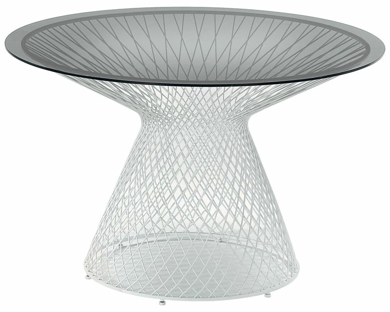 Emu company decided to reinterpret metal material and asked great designers for help. Jean-Marie Massaud played along and designed the Heaven collection. It is a real technological feat: this collection transforms steel – rigid and cold – into "plastic", soft and extensible material. The flexible material is plaited like a precious fabric and then shaped so that these supple and sinuous lines can be born. The metallic intertwining gives volume to the ‘incorporeal’ Heaven table. This table with enveloping forms and airy silhouette represents, according to its designer, "a manifesto of elegance, mid way between glamour and timeless sensuality". This creation provides great comfort and, featuring simple and essential lines, can fit into different kinds of environment. Heaven table, anti-corrosion treated, is ideal for homes, gardens as well as public areas (cafés, restaurants,…). Heaven table will form a beautiful set with chairs of the same collection. Available in two colour versions: white and aluminium.
