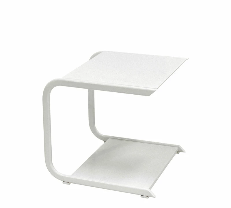 The Holly side table will follow you everywhere. Ideal for both indoor and outdoor use, it fits in easily by a sofa, next to the bed or near a lounger in the garden. It’s the perfect accompaniment to the Holly sun lounger. It has two little shelves, great for putting your magazines, sunscreen, glasses and drinks on. Stable and functional, its dynamic outline is enhanced by its bevelled edges. Thanks to its treatment for outdoor use and its anti-scratch paint, it’s hard-wearing and particularly well adapted for places near the sea.