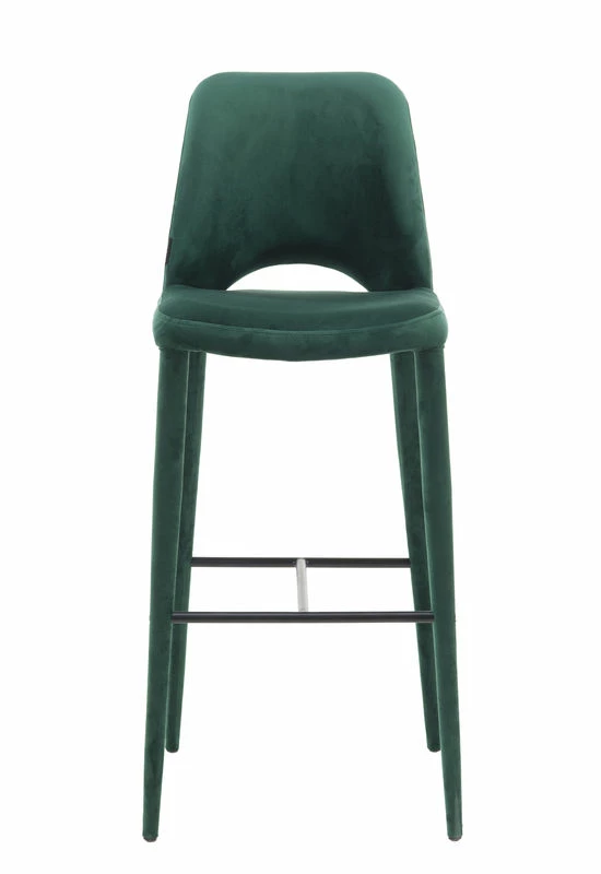A vintage, chic style for this ultra-comfortable bar chair. The wrap-around backrest and soft padding ensure optimal sitting comfort. The opening at the bottom of the backrest serves as a handle to easily manipulate the stool. The Holy bar stool has an ultra-elegant, single-material finish. It’s covered from top to toe with a luxurious velvet material. Silky, velvety and warm, this fabric represents a refined and glamorous style. The intense, vibrant colour will bring a certain cosy conviviality into your home. The tapered legs are fully upholstered. This high stool lets you create a bar space or dining area with a sophisticated look.