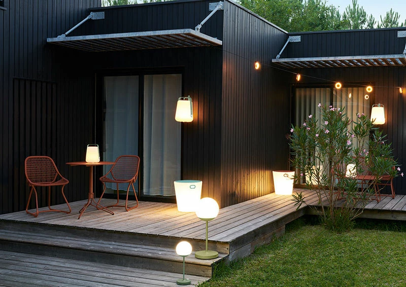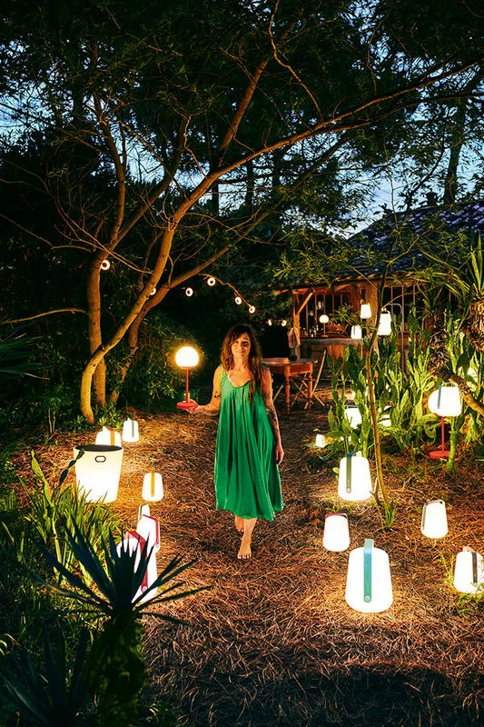 Inouï is a piece of furniture with many forms and various possibilities… It lets you sit down but it is also a side table and a light! Its light will make an impact during your drinks on the terrace or a meal in the garden. Inouï creates a highly contemporary lounge light mood. Resistant to impacts and poor weather, Inouï is not afraid of knocks, the rain or UV rays. Wireless and light, Inouï is a mobile piece of furniture that you can easily move from the lounge to the terrace depending on the seasons and your requirements! It offers up to 13 hours battery life (with 3 hours charge) It charges very simply by placing it on its included charging stand (IPXO charging stand) The body made from translucent polythene lets the light through. It is topped with a steel sheet available in a variety of colours which offer as many options to create your outdoor or indoor décor. The simple shape with rounded lines is given a twist with coloured handles. Not only can you choose the brightness (2 levels) but also the temperature of the light (neutral white or cool white). These two temperatures create two different lighting moods: warm lighting (neutral white) or indeed a “cool white” lighting (blue shade) which renders surrounding colours more accurately. The light can be controlled in 2 different ways: with the dimmer / switch located on the handle, or remotely via Bluetooth on a free Fermob lighting app. This app lets you vary the brightness and temperature of the light, create and select moods and control 1 or several lamps.