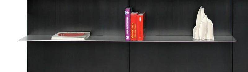 The iWall shelving unit was born from a simple concept: a single wall panel to combine with shelves to create unique compositions. A system without hooks or joins allows the user to create walls, screens, horizontal and vertical elements, angles, benches, entertainment systems – anything at all. The niches carved out of the piece underline the monolithic and solid nature of the Urban shelving unit. A modern piece which stands above the whims of fashion. The infinite possibilities of composition allow the user to create surprising landscapes and furnish their spaces in a dynamic and bright manner.Wall panel sold separately.PLEASE NOTE: the phosphate steel is a material which requires a particular attention. Avoid water stagnation and direct contact with sources of heat (hot pans, hot mugs, etc) so not to mark the material.