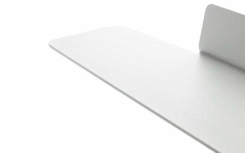 The Jet shelf is the result of a designer's play with surfaces and production. The light aluminum shelf has a spacious design and a clear-cut industrial silhouette, making it appear like a part of a jet fighter's aerodynamic construction. An asymmetric relationship between a horizontal and vertical surface creates the Jet shelf's architectural design and comes together as an attractive platform for storage and display. The profile has small incisions, which create the attractive grooved surface texture. The grooves also ensure that the items placed on the shelf are less likely to slide. The raw industrial look makes Jet a refreshingly alternative choice for a wall shelf.