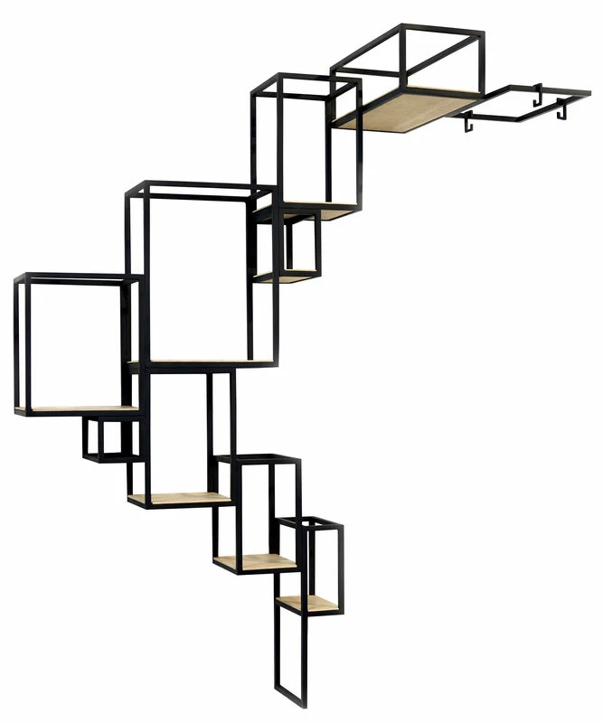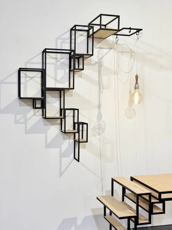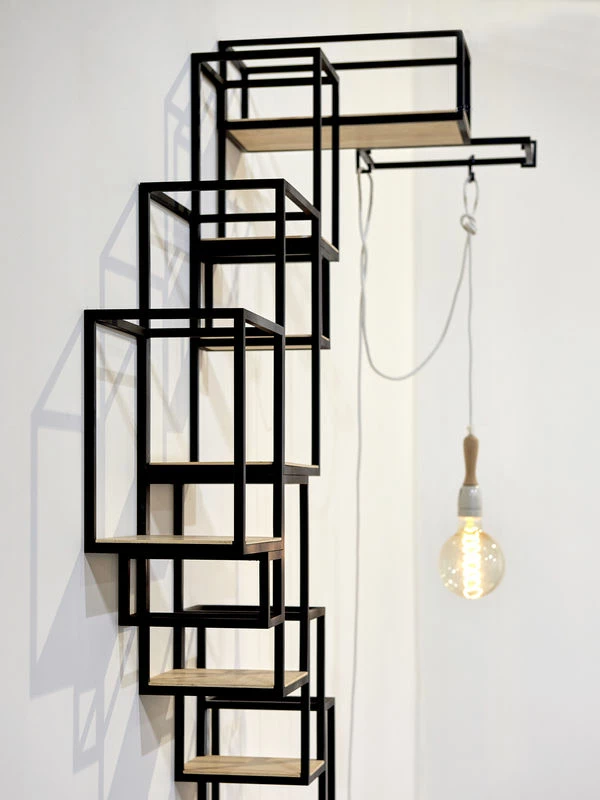 The designer Filip Janssens is a regular of modular furniture. With the Jointed shelf, he delivers a clever exercise around the full and the empty, drawing 11 volumes of different sizes to accommodate books and objects. Its black metal structure highlights a set, each element however seems to be emerging clearly on the wall into a set of enigmatic shadows. At each end, a black metal frame allows to hang a lamp or other objects, making the shelf with wooden shelves the perfect ally of the office for a spectacular sculptural rendering .