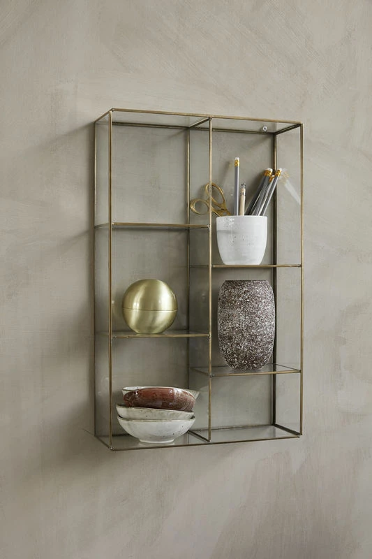 Precious transparency … Very elegant, this wall shelf offers a beautiful combination of materials: the transparency of glass and the refinement of the brass-finish metal. Showcased in this beautiful piece, your books and other objects will resemble museum pieces. With its retro design, it’s reminiscent of the cabinets of curiosities from the 16th century. The Keeper shelf attaches vertically to the wall, with screw rings at the top of the shelf provided for this purpose.