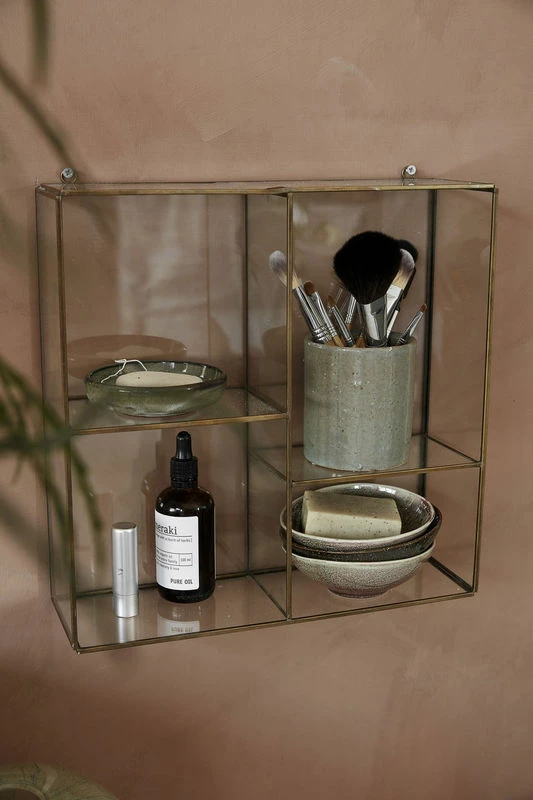 Precious transparency … Very elegant, this wall shelf offers a beautiful combination of materials: the transparency of glass and the refinement of the brass-finish metal. Showcased in this beautiful piece, your books and other objects will resemble museum pieces. With its retro design, it’s reminiscent of the cabinets of curiosities from the 16th century. The Keeper shelf attaches to the wall, with two screw rings at the top of the shelf provided for this purpose.