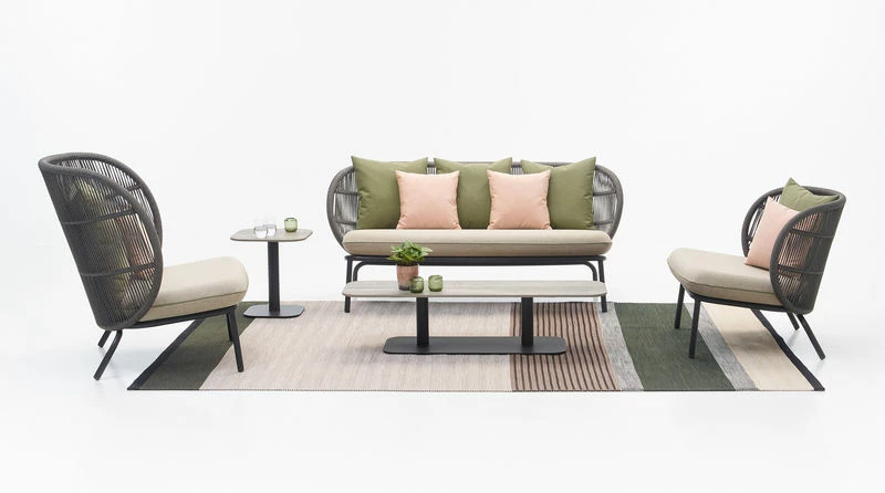 This powder-coated aluminium side table complements the Kodo seating collection. Weather-resistant, it can be used both indoors and out. The round, solid base brings an industrial dimension to the table.