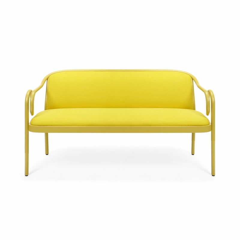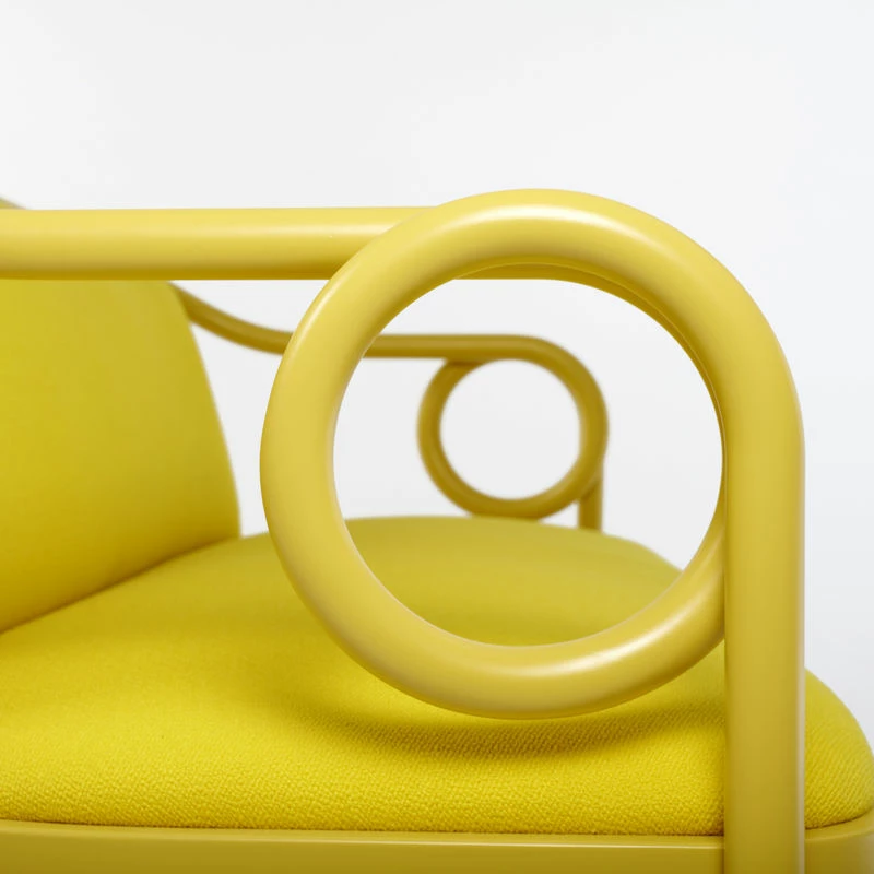 Responding to the invitation extended by historic manufacturer Gebrüder Thonet Vienna, designer India Mahdavi created the Loop bench. With its playful curves, this bench has the charm of a hand-sketched drawing and benefits from the ancestral expertise of the famous Venice-based creative studio: “Gebrüder Thonet Vienna is the only manufacturer in the world that lets you translate a freehand design into a living piece in wood of this quality.”The steam-bent wood element, the lietmotiv of the Wiener GTV Design brand, has been featured in this project in an unexpected way in the form of loops, that India has designed in single stroke, without lifting her pencil from the sheet of paper, remaining faithful to the idea of movement. The bent beech frame traces a line that winds in on itself, before continuing its path, leaving two folded loops in its wake. These charming buckles push the limits of the curved wood: the wood doubles its efforts to boost its beauty and rounded contours. India worked with a subtle colour palette: the structure and fabric covering come in similar, but not quite identical, tonal combinations. Rich materials, high standards of quality, exceptional finishes and an original form, all wonderfully characteristic of the Wiener GTV Design spirit. Drawing on the tradition and way of thinking of Michael Thonet, Wiener GTV Design develops products rooted in an innovative, meticulous design process. A team of designers, creators and artisans produces unique products of exceptional craftsmanship. The durability of the products is at the centre of the development process. This comfortable, padded Loop bench will be perfect for brightening up an entrance hall, a balcony or a living room. Cosy and colourful, it creates an ambiance that is simultaneously bohemian, modern and on-trend.The benches are perfect for creating cosy corners brimming with softness. Ideal for reading or welcoming friends passing by, this bench can also be paired with the armchair from the same collection to create a harmonious, matching space.