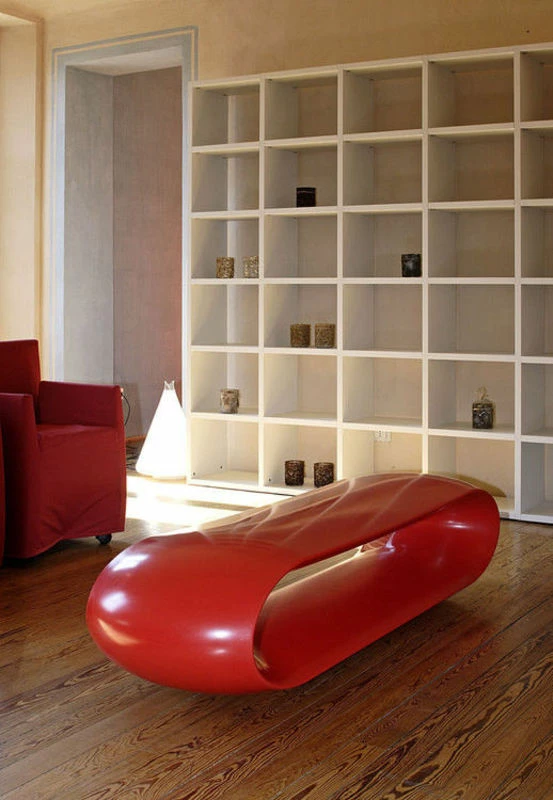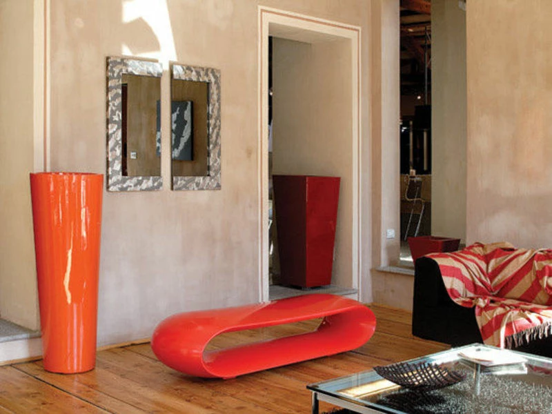 Fashion bench in polyethylene characterised by an external chrome surface and by the lightness of his open shape. Ideal for shops furniture, contract but also at home.