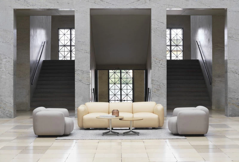 Lunar coffee tables combine a round top with a solid central 4-star base in polished or black lacquered cast aluminium. The top comes in a multitude of versions to suit your decor: from the luxurious, sensual warmth of traditional oak to a fine selection of Italian marbles in muted tones of black, white, coffee and sand that add a sophisticated dimension to any decor. Lunar coffee tables meet multiple needs in private homes as well as public spaces.