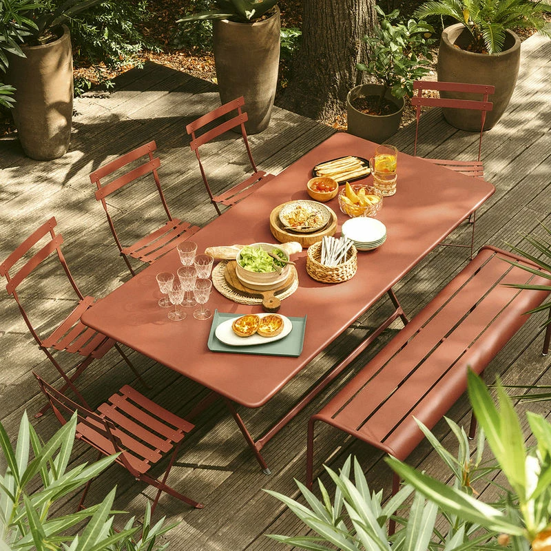 Fermob asked designer Frédéric Sofia to reinterpret the mythical SENAT armchair from the Jardin du LUXEMBOURG via a range of aluminium furniture with the same name. The result is a fabulous collection for outdoors which aspires to the good life: ”By designing furniture to go with the Jardin du Luxembourg armchair, I sought subtle lines which respect the so-French style of the 20s and invite people to discover the simple pleasures of the past in the secret of their own garden.” This 3- or 4-seat bench has a taste for truancy. Frédéric Sofia wanted to turn away from the traditional school bench to reinterpret it in a modern way: it gains in colour without leaving behind the classical charm that its look offers it in a completely understated way. This bench is also very durable and light, a really practical product! With its three wide seats, it is the natural companion to large tables! Ideal as a complement to the Luxembourg range, it is also perfect combined with the Cosmo table. Made in Design is offering it to you in a variety of fun, vibrant colours.