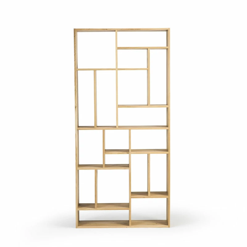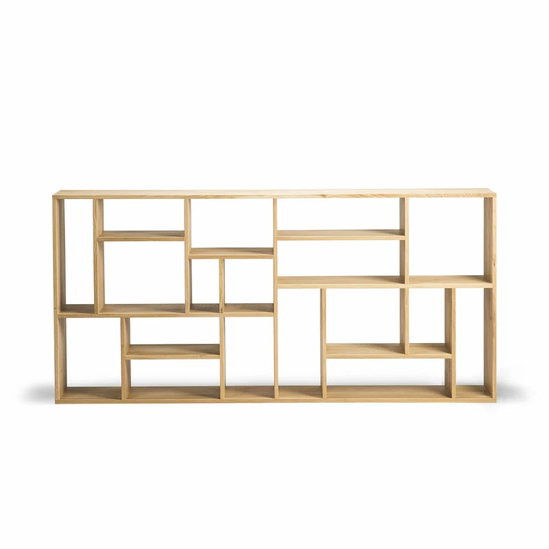 For twenty-five years, Belgian brand Ethnicraft has paid tribute to the beauty and authenticity of solid wood. Timeless, extremely strong and durable, these are quality pieces of furniture that age wonderfully and are passed down from generation to generation. Handcrafted, Ethnicraft furniture is the result of exceptional know-how. Behind the apparent simplicity of the design hides a constant search for innovation. Integrating advanced techniques into the creative process, each new design is worked out down to the smallest detail. Respectful of the environment, the wood used comes from sustainably, responsibly managed European forests (FSC CoC certification which attests that the wood was produced with respect for the environment and social values). Made of solid oak, the M bookcase is an original, unstructured composition of vertical and horizontal lines. This set of variable geometries offers storage spaces of different sizes. A superb asymmetrical assembly, a succession of narrow, rhythmic spaces which will present your favourite books and objects in a very graphic way. This piece of furniture can hold your books in the living room, your dishes in the kitchen and even your towels and toiletries in the bathroom!