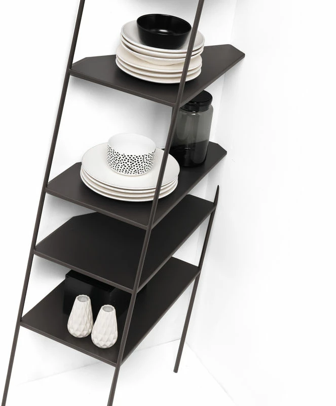 Fun and mischievous, the Mama’ wall shelving unit plays with our perceptions! Slanted and half-visible, it seems as though it is within the wall, but it is only an optical effect. The Mama’ wall shelving unit is perfectly stable, practical and independent. Its design is the result of in-depth and passionate work on the optical effect, movement, the visible and the supposed. Despite its mistreated or even weakened appearance, Mama is a robust and well designed unit. Each of the shelves is firmly fixed to 2 of the 4 uppers at the least. The whole of the unit rests on the 4 feet and on the wall which accommodates it (wall fastening necessary). Mama’ wall has 6 perfectly horizontal shelves. Sculptural and unusual, Mama will hold your books and trinkets for the most outstanding display!