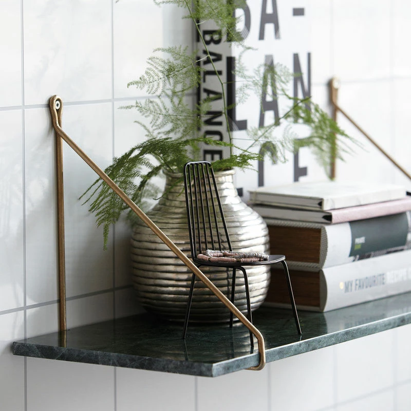 Marble is trendy right now. With the Marble shelf, House Doctor provide their adaptation of the classic 1970s shelf unit. The shelf is made of marble that comes in a wonderful green colour. The shelf will certainly bring liveliness to your walls. Combine the shelf with a set of nice shelf supports to get a beautiful shelf unit that will undoubtedly add an exclusive dimension to your décor. It is the perfect shelf unit for the bedroom, bathroom or living room. Dimensions: 24×70 cm