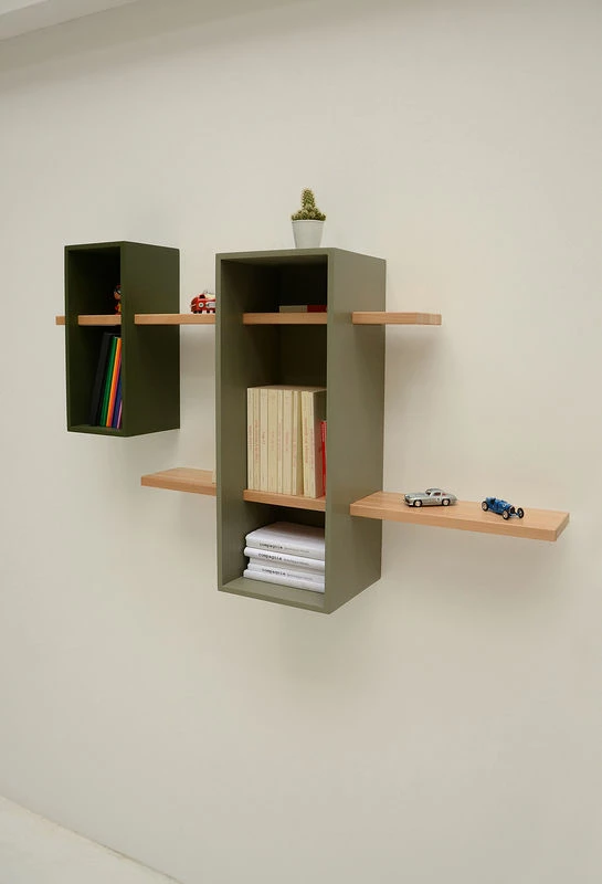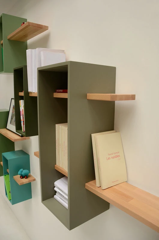 "The bookcase Max belongs to the very last range ""Pièces complices"" by the éditions Compagnie : a collection thought by two friends architects, Jean-François Bellemère and Olivier Chabaud, and enriches by the look of their children who have respectingly 4 and 5 years. This bookcase could be perfect in a child room, but it can also be sttled in all the spaces of the house : living room, kitchen, bathroom, desk… It exists in 2 versions with a choice of 6 different colours (a gradation of green inspired by a trip in Sardinia)."