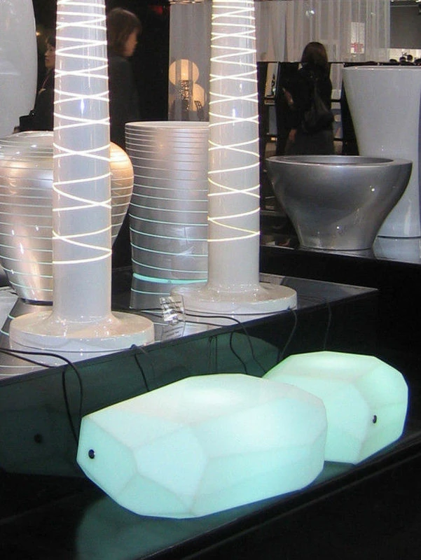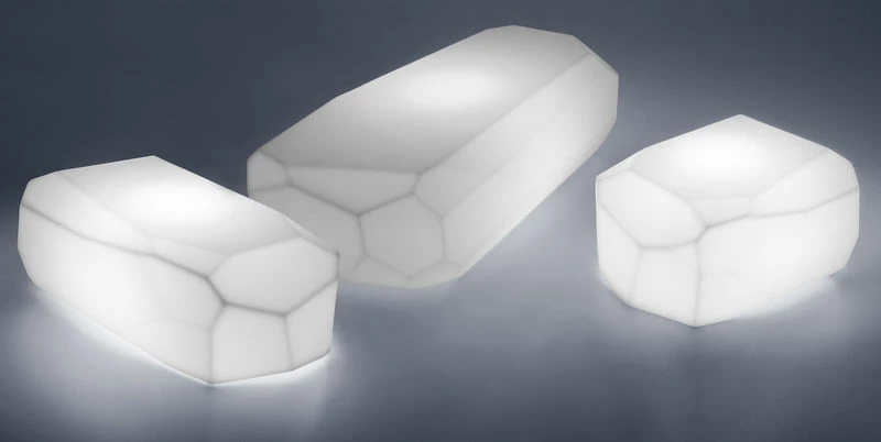 Meteor is both a lamp, a low table, a pouffe for indoor and outdoor outdoor use. A wonderful light for a modern and lounge ambiance in your garden, terrasse, living room… Arik Levy's rocks perfectly blend both in a natural landscape and in all interior or garden. Available also in normal version (not luminous).