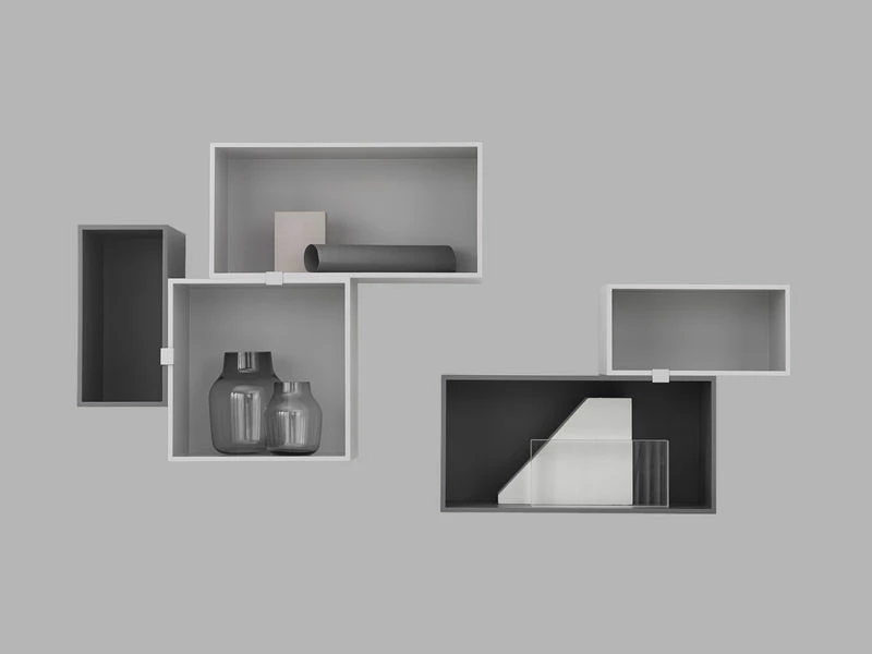 Following the success of the Mini Stacked shelf system, here is Mini Stacked 2.0: these new modules are an improved version with better quality finish, enabling you to design small made-to-measure units that are perfect in the kitchen, office or a child’s bedroom! Thanks to the three sizes (S, M and L) of the Mini Stacked 2.0 modules and the two options (with or without back), you’re free to create new shapes. The different finishes (natural oak, grey, white and light grey) even enable you to invent multicoloured compositions. Combining the modules could not be simpler, simply use the clip provided with each module. No need for either screws or glue! You can then attach your composition to the wall (mounting system provided) or simply position it on the ground or on a work top. Anything is possible with the Mini Stacked 2.0! Mini Stacked is a modular system: you can use just a single module or assemble lots of them to create a small bookcase, an attractive cabinet for all your favourite knickknacks or a storage area for the bathroom or kitchen. You can stack the modules horizontally or vertically to create a magnificent, customised storage space! A multitude of combinations are available for you to use. A versatility limited only by your imagination! Each MINI Stacked 2.0 module comes with a metal assembly clip which you can use to attach two modules together. You can also buy a set of MINI Stacked 2.0 metal assembly clips separately (available in a range of colours) to assemble as many MINI Stacked modules as you want. See set of 5 MINI Stacked 2.0 assembly clips. PLEASE NOTE. We do not recommend combining Mini Stacked and Mini Stacked 2.0 collections