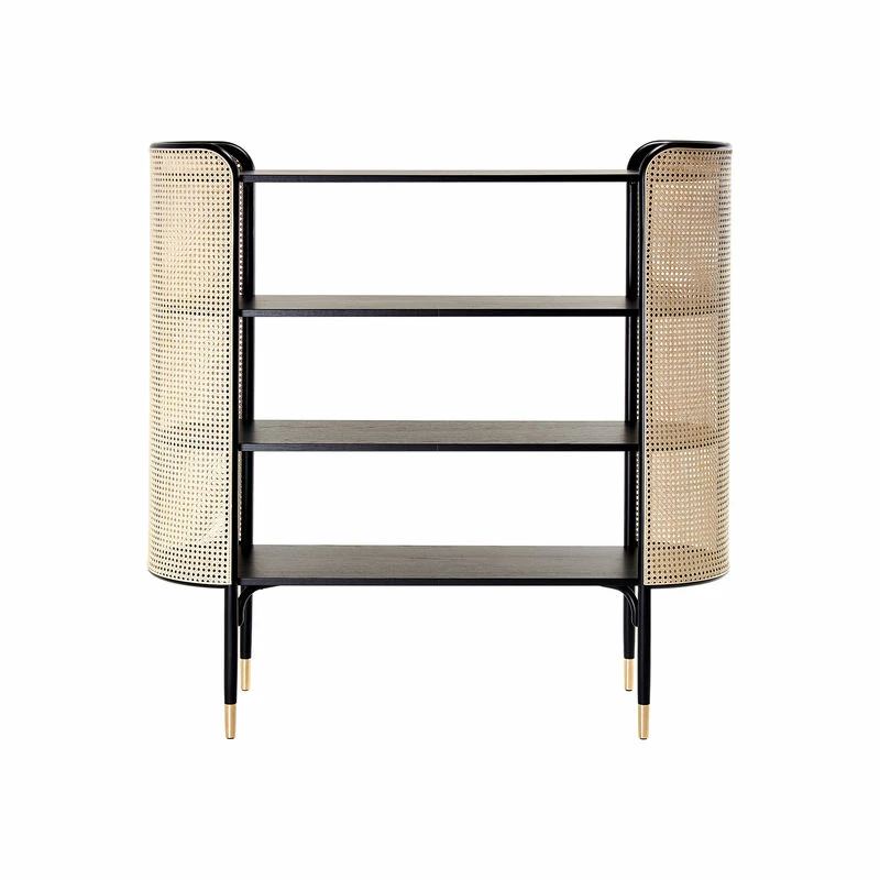 Exuding a retro charm with an Art Deco feel, the Mos shelving was designed in 2020 by the famous Italo-Danish Gamfratesi studio. This is a creation that breathes great modernity, combined with the timeless elegance of the first items of bentwood furniture that appeared in the late 19th century. Mos is characterised by its incredibly decorated and curved panels in straw caning, adding to its strong personality. These panels delicately surround the four shelves, disguising part of their content. The solid, lacquered black beech structure is finished with gilded brass feet, which give it a refined aspect. Thanks to its lightweight elegance, the Mos shelving can be integrated into any space, from the living room to the bedroom, in an office or an entrance hallway… The wealth of materials, high quality standards and exceptional finishes combined with the original shape perfectly reflect the Wiener GTV Design spirit. Drawing on the tradition and way of thinking of Michael Thonet, Wiener GTV Design develops products rooted in an innovative, meticulous design process. A team of designers, creators and artisans produces unique products of exceptional craftsmanship. Product sustainability is at the centre of the development process.