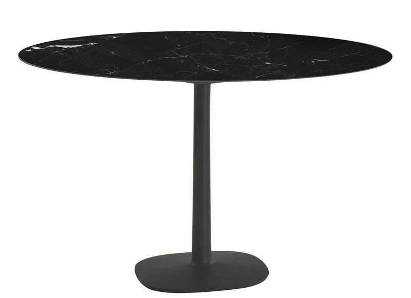 Multiplo tables lie in the concept that you can give tables a completely different appearance by simply changing the colour and pattern of their surface. The top itself is formed from extremely sleek ceramic that features a marbled effect. From the minimalist to the decorative, from pop art to more elegant designs, from bourgeois dining tables to the perfect bar tables for contract furniture, Multiplo bears witness to this eclectic and versatile spirit.