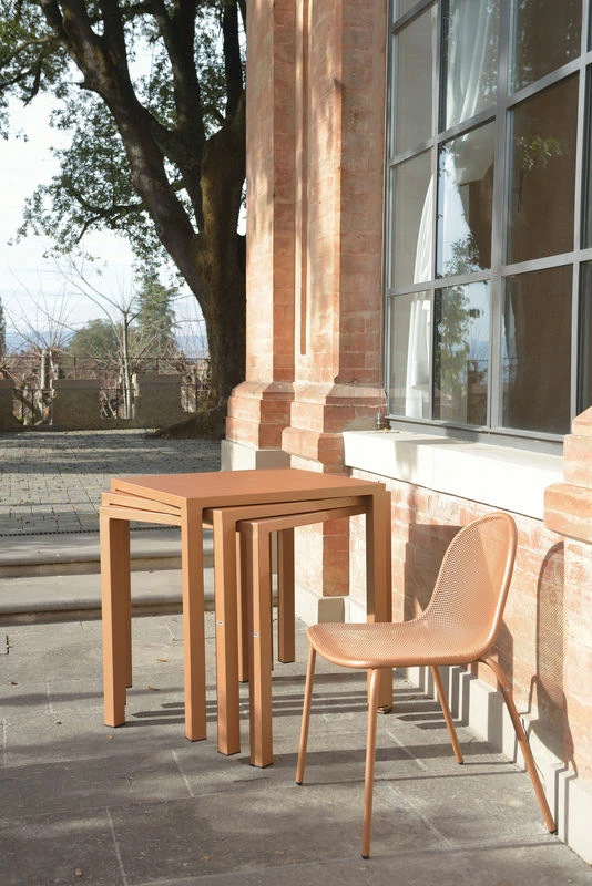Made of varnished steel, the Nova table is characterised by a great simplicity, which grants it great versatility. With its simple and modern lines, the Nova collection was designed to wonderfully blend in with all kinds of spaces, small or big, private or public. It works just as well in the kitchen as on a terrace. With more than fifty years’ experience in metalworking, Emu expresses its style in gardens and terraces all around the world. Emu creations have become icons in the world of “made in Italy” design and quality.