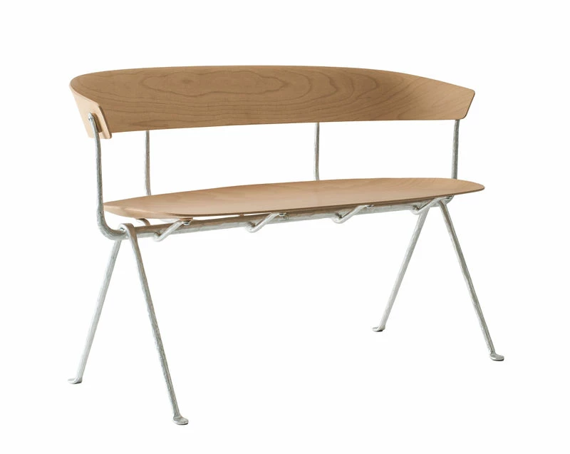To create their Officina collection, the famous Bouroullec brothers used one of the oldest ironworking techniques: wrought iron. Their goal is to give a contemporary visual language to wrought iron furniture which is somewhat outdated. The raw appearance of wrought iron is deliberately preserved. The uneven, imperfect surface gives these items of furniture a special vibration, an artisanal flavour. By reflecting all the random marks left by the tools used to make it, these pieces add a new twist to the industrial style. The Officina bench combines an inviting seat in beech plywood with a wrought iron structure with clean, refined lines. The Officina collection reflects the work of the Bouroullec brothers. For them, the role of designing is to reveal a knowledge of the material and the techniques applied: it awakens deeply buried emotions linked to the details on the object and its crafting, touching on the universal.