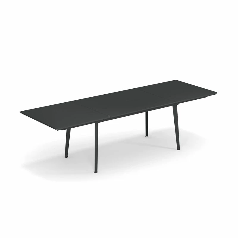 Plus4 is a large extendable table, ideal for enjoying a nice meal together in your garden. It is sturdy, practical and adjustable. Made completely from steel, it is happy both outdoors and in. Able to seat up to 10 people, it’s the ideal partner to enjoy moments together among friends or family. With its timeless, clean design, the Plus4 table fits into all styles and combines with any chairs. The “butterfly” mechanism of the internal extension ensures extremely easy opening. Compared to a traditional extending table, the 110 cm extension lets you add 4 place settings instead of 2, which increases the possibilities for using this product. In addition, the table extension is designed so that everyone can sit without its legs getting in their way. With more than fifty years’ experience in metalworking, Emu expresses its style in gardens and on terraces all around the world. Emu creations have become icons in the world of “made in Italy” design and quality.