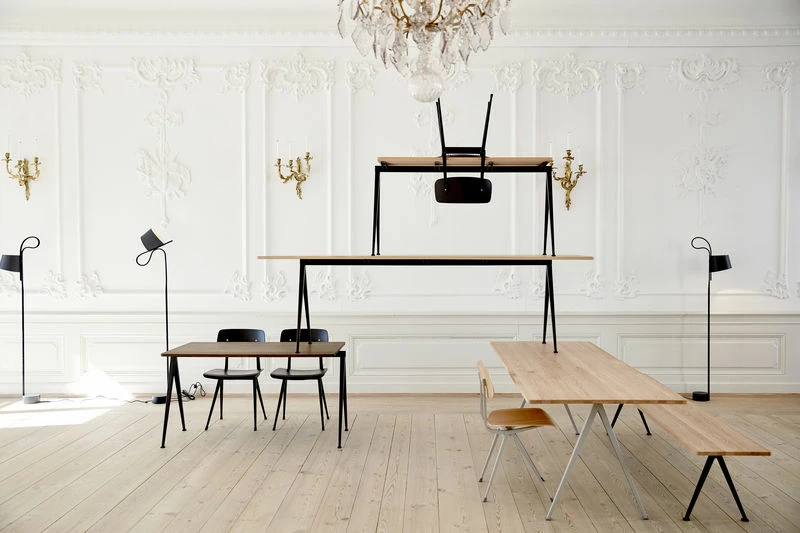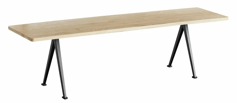 The Pyramid table and bench are icons of vintage and industrial design. This furniture was designed in 1959 by Wim Rietveld. The son of the great designer and architect Gerrit Rietveld, he is considered one of the greatest Dutch designers of his generation. He wanted to design a rational and minimatist furniture. The Pyramid bench is super solid, light and practical. It combines an oak seat with a folded steel structure. The metalwork is reminiscent of Jean Prouvé’s work. Bench looks so simple and that is precisely its strength. Nothing is superfluous. When you keep only the essential, the essence remains: A functional and timeless design.