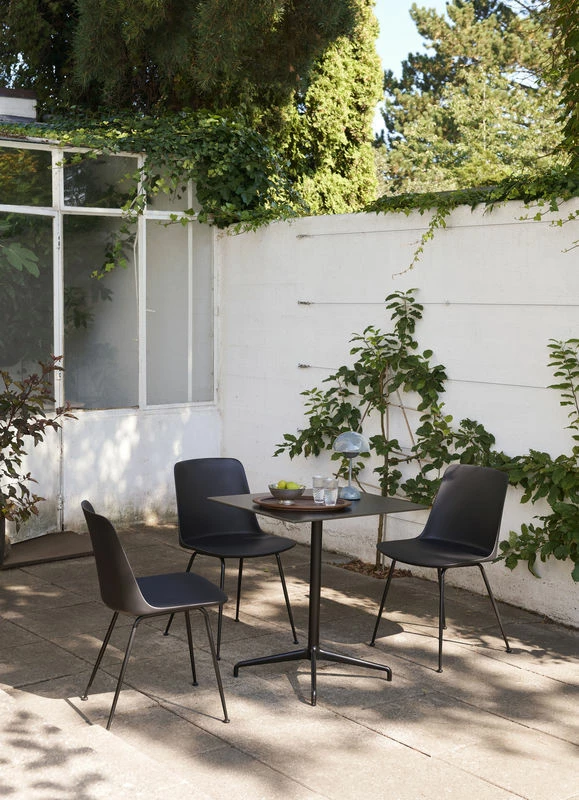 Evoking traditional café tables, Rely tables combine a central steel leg with a compact laminate top. The four-spoke base ensures perfect stability. Rely is a versatile table that fits in both private environments and public spaces (community spaces, bars, restaurants). Durable and easy to look after, the Rely table is weather-resistant and can be used outdoors.