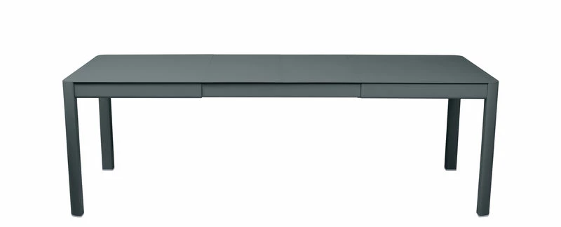 Ribambelle is a large, robust, practical and adjustable extending table. Made completely from aluminium, it is happy both outdoors and inside. Able to accommodate up to 10 people, it will be the ideal partner to enjoy moments together among friends or family. The 2 central extension leafs are completely built into the structure of the table for perfect aesthetics. Thanks to a telescopic system on bearings, extending becomes simple and fluid. When they are not being used, the extension leafs become discrete, sensibly stored in a storage box located under the top. With its timeless and clean design, Ribambelle fits into all styles and combines with any Fermob chairs. Combine the shapes and colours to give it all a dynamic and unique appeal! Made using processes and a technology which meets high requirements in terms of quality, Fermob products are fully Made in France, as shown by the location of the plant in Thoissey.