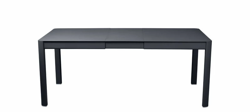 Ribambelle is a large, robust, practical and adjustable extending table. Made completely from aluminium, it is happy both outdoors and inside. Able to accommodate up to 8 people, it will be the ideal partner to enjoy moments together among friends or family. The central extension leaf is completely built into the structure of the table for perfect aesthetics. Thanks to a telescopic system on bearings, extending becomes simple and fluid. When it is not being used, the extension leaf becomes discrete, sensibly stored in a storage box located under the top. With its timeless and clean design, Ribambelle fits into all styles and combines with any Fermob chair. Combine the shapes and colours to give it all a dynamic and unique appeal! Made using processes and a technology which meets high requirements in terms of quality, Fermob products are fully Made in France, as shown by the location of the plant in Thoissey.